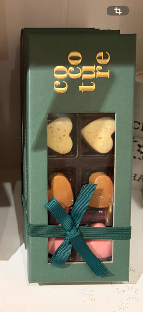 Ca. 72g 8stk fyldte hjerter i grøn Cocoture æske