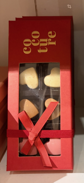Ca. 72g 8stk fyldte hjerter i Rød Cocoture æske